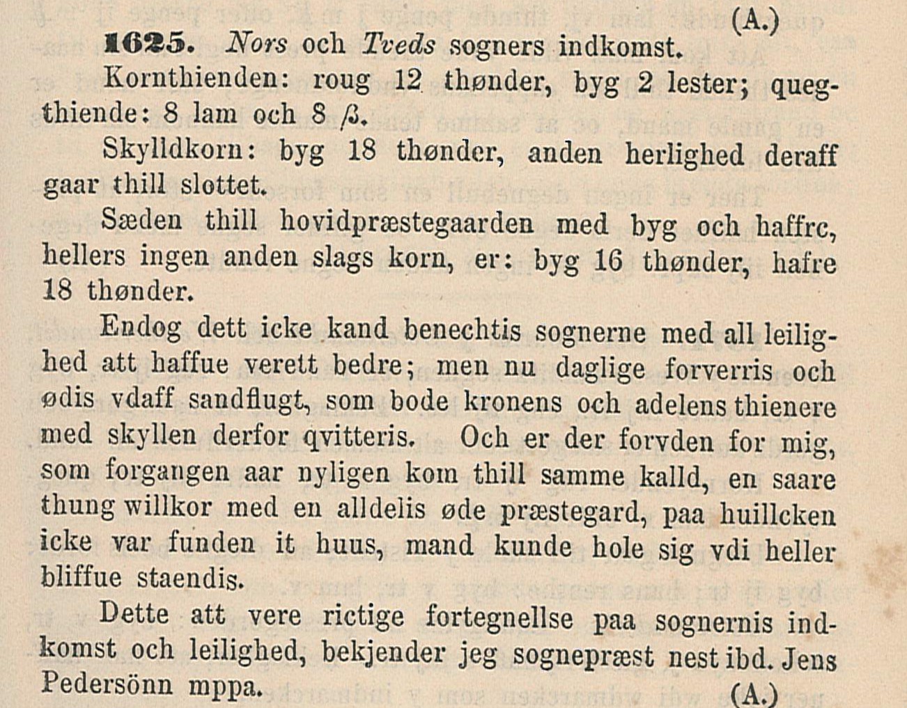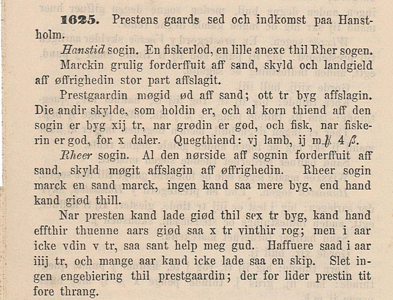 Præsteindberetning Hanstholm 1625